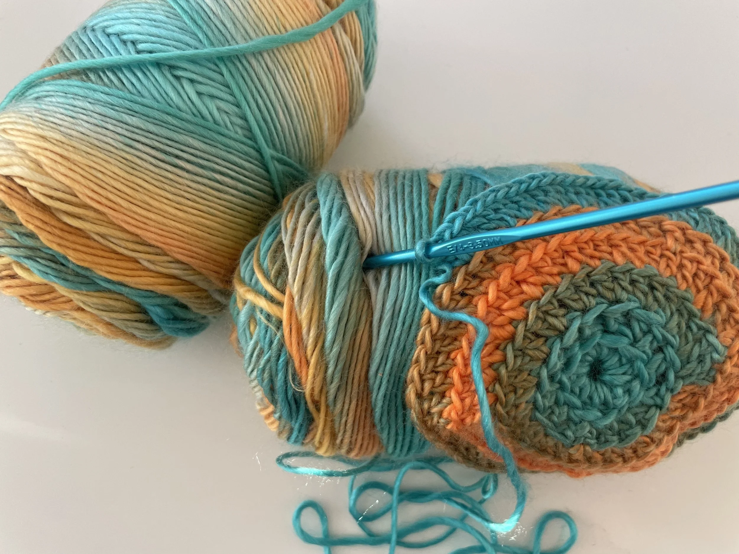 A project that uses as completely different medium can help with artist block and burnout. Image: Crochet blanket in progress.